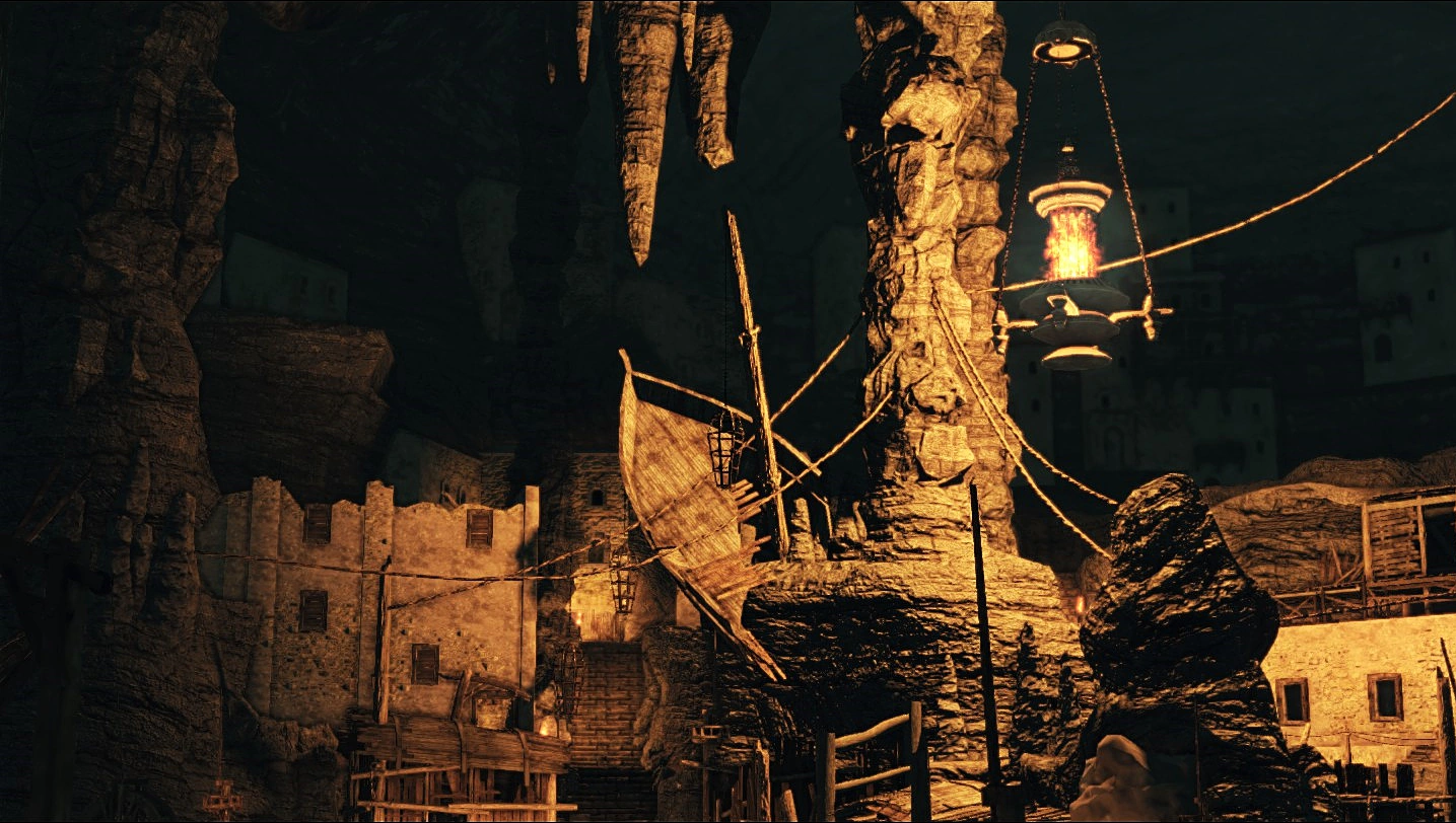 На среднем уровне (после длинной лестницы, справа) с помощью Ключа-камня Фарроса можно активировать большой фонарь, освещающий всю локацию.