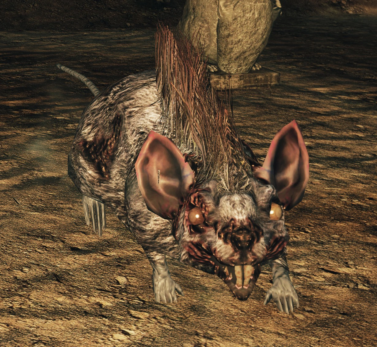 Крысы, защищающие босса, немного сильнее своих собратьев и имеют немного больше здоровья чем те, что обитают в Могиле святых. А так же с них ничего не выпадает кроме душ, так что пофармить хвосты не получится.