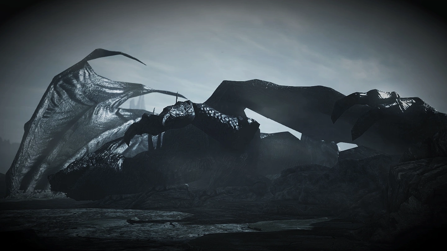- Есть предположение, что мир в воспоминаниях дракона - это мир до Эры Огня, когда не было ни света, ни тьмы (вся локация серая), ни жизни, ни смерти. На это указывает и описание изогнутого меча дракона, где описывается мир Древних, таким же мы видим его в воспоминаниях (туман, древнейшие деревья, серые утесы). Также можно сказать, что если это действительно первоначальный мир, то дракон погиб во время сражения первых богов (Гвин, Нито, Ведьма Изалита) с драконами после предательства Сита.