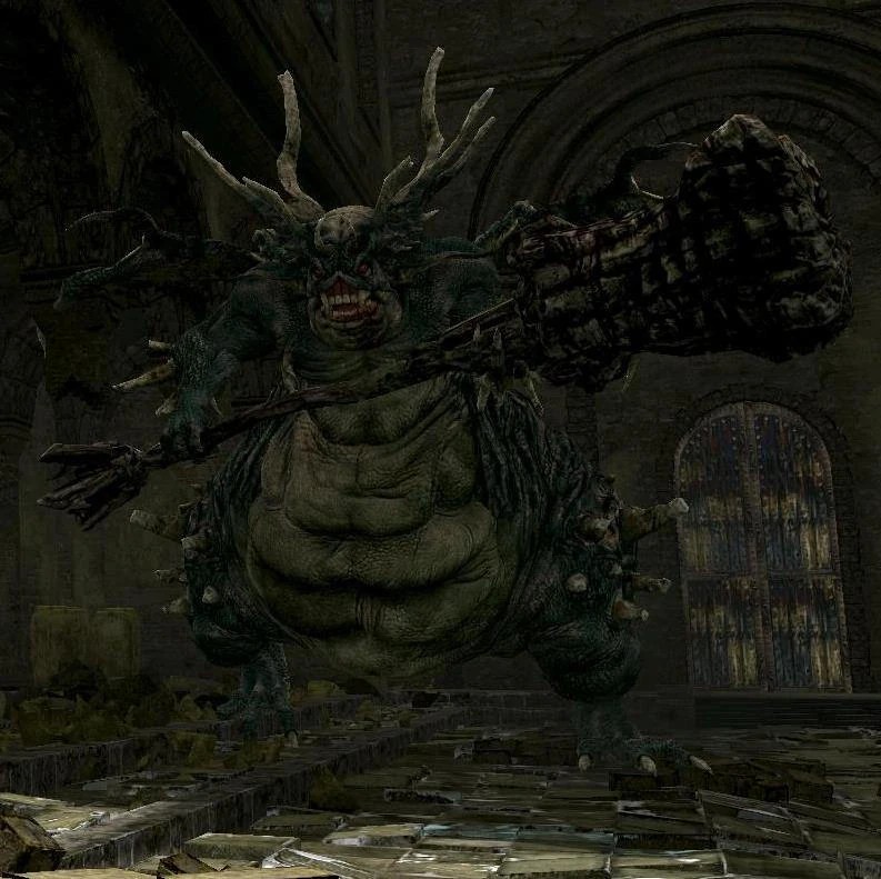 Демон Прибежища (Asylum Demon) — первый сюжетный босс Dark Souls, задающий базовую механику боя: уклонения, атаки в окно после анимации и прыжковый удар сверху.