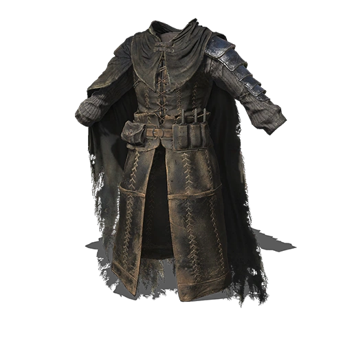1 часть = Одеяние из тех, что носят охотники, известные как королевские черноруки. Черный плащ, покрывающий кожаный доспех, укутывает владельца тьмой.