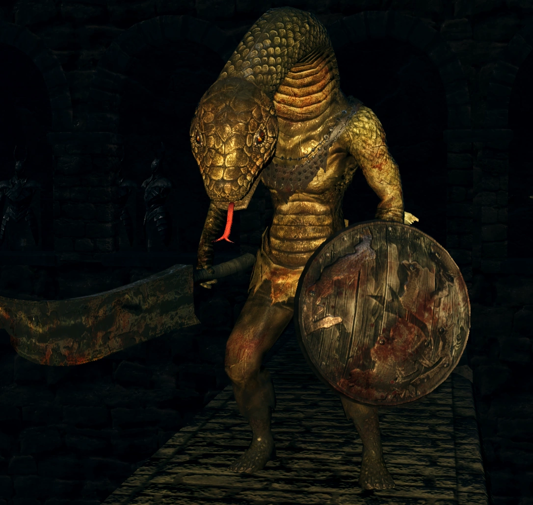 Очень высокие солдаты, которые имеют человеческое тело и змеиную голову. В бою используют огромный меч, а также носят неизвестный щит.