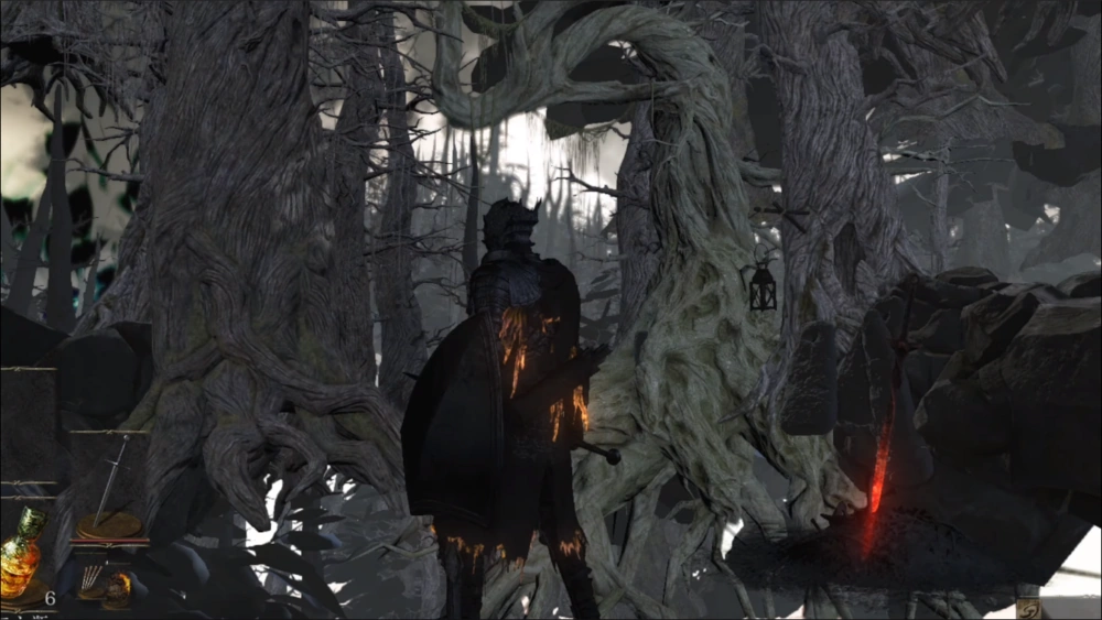 Некоторые из объектов данной локации (несколько деревьев) были представлены в [https://www.youtube.com/watch?v=k9xdWG8HSD0 тестовой версии игры] в Цитадели Фаррона, в Городе за стеной (горшки и надгробья возле первого судьи-гиганта), а также в комнате, которая открывается сразу после победы над Оцейросом.