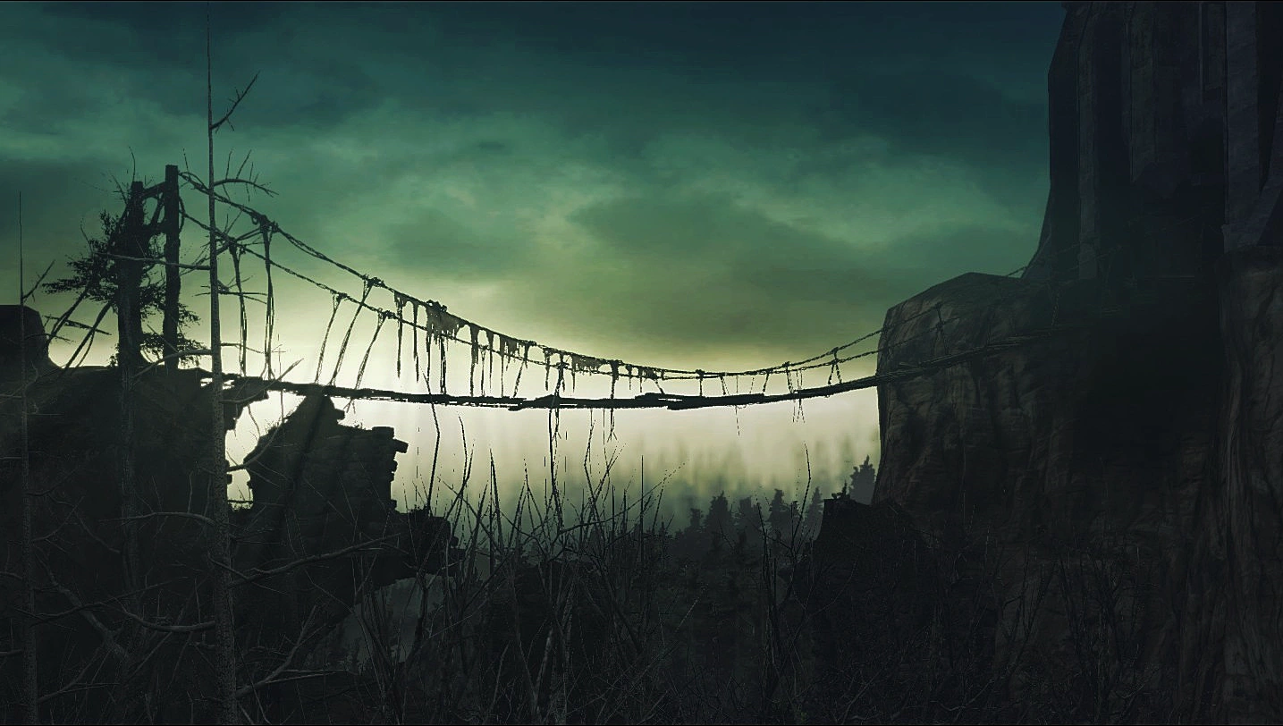 Возвращаемся к тюрьме, где лежал моргенштерн. Вы увидите две дороги – налево наверх, в сторону поднятого металлического моста и вперед, в сторону небольшого каменного мостика. Для начала исследуем второй путь. Вы увидите круглую темницу с лежащими внутри предметами (ядовитый мох (2 шт.), зеленый цветок (1 шт.) и Копье души), однако никаких брешей в стенах нет. Забрать вещи можно, спрыгнув в дыру в крыше тюрьмы с близлежащего возвышения. Далее — мост, перейдя который, вы встретите ещё одного противника, с которым нужно проявлять осторожность — палача с алебардой. Ему будут помогать несколько полых. Убивайте их и поднимайтесь туда, где стоял палач. Пройдя вдоль горы до конца, вы найдете полого и труп с шипастым кнутом. Возвращайтесь назад и идите по дороге между скалами. Здесь находится проход, который ведёт к веревочному мосту, однако он очень серьёзно охраняется палачами — обратите внимание на верхушки колонн далее. На четырёх из них находятся эти опасные противники, постарайтесь выманить их по одному, осторожно продвигаясь вперёд. Очень рискованно будет выманить всех сразу — бой одновременно с несколькими такими противниками может закончиться для вас фатально. Далее наверху слева поджидает пятый с кнутом. При продвижении по мосту смотрите под ноги и обходите дыры, поскольку персонаж может провалиться в них. Как и было написано ранее, отсюда также можно добраться до трупа, лежащего на сломанной опоре. Дойдя до конца, вы попадёте в новую локацию — Чистилище Нежити.