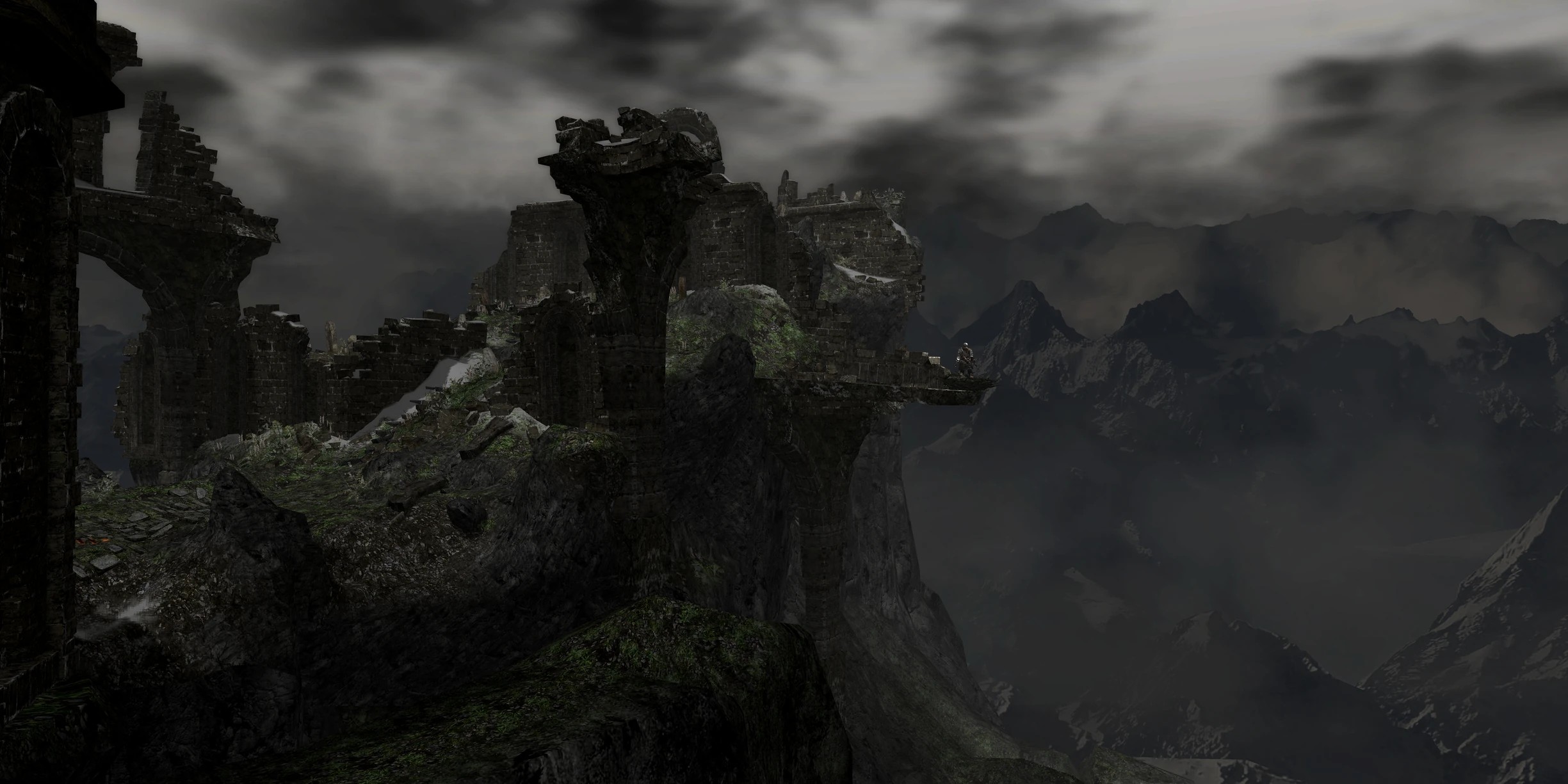 Исследуя локацию, можно обнаружить несколько Черных Рыцарей, с которых гарантированно выпадет Обломок красного титанита и некоторые другие вещи в зависимости от шанса выпадения вещей вашего персонажа. Оскар из Асторы, который помог нам в начале, стал полым и нападёт на вас, едва вы зайдете в пробитую шаром комнату. С него гарантированно выпадет Щит с эмблемой, весьма полезный против магов. Если пройти наверх, где был туман к боссу в самом начале, пройти дальше за лучника, к обнаруженной в начале двери, то ее можно будет открыть найденным в Храме Огня ключом. За дверью Ржавое железное кольцо, оно пригодится при исследовании Чумного Города.