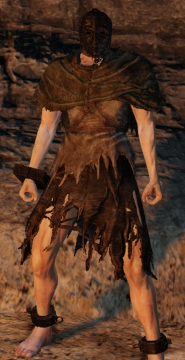 3 часть = Крепкие оковы для рук. Изорванная одежда осужденного, что-то вроде юбки. Поясницу перетягивает тугой ремень. Уже неизвестно, кого так наказывали и зачем.