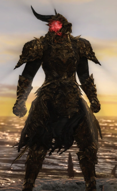 1 часть = Про эту жутковатую на вид броню слагают легенды, поскольку ее части созданы из чешуи черного дракона.
