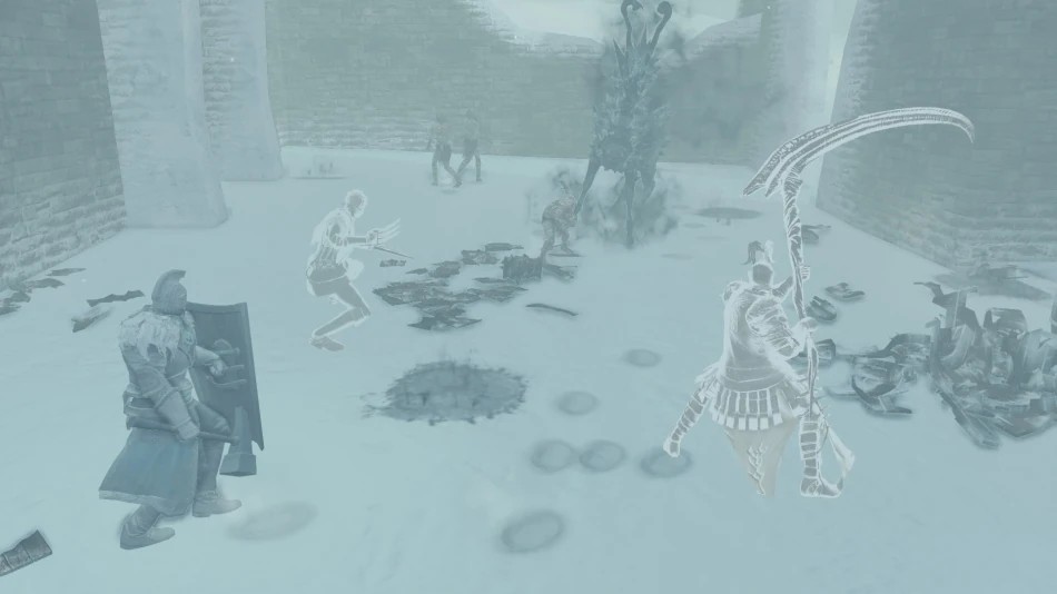 Во время метели ориентацию облегчает свет, пробивающийся сквозь снежную завесу: он почти всегда должен быть по правую руку (если идти от руин к руинам, сам же источник света, по-видимому, находится прямо над боссом).