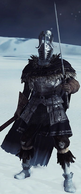 Одет в полный сет Фараама. Рыцарь носит кольцо простака, которое делает его невидимым во время перекатов.
